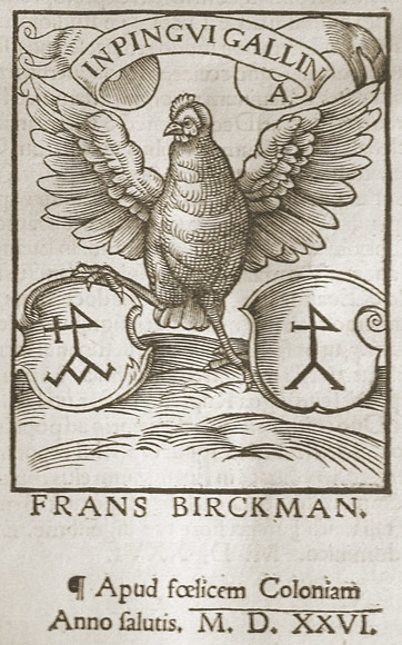Ornamentale Zeichen der Drucker, die bereits in den Inkunabeln zu finden waren, mit der Funktion von Urhebernachweis, Rechtssymbol, Qualitätskennzeichen, später vor allem als Buchschmuck. Zunächst wurden diese Zeichen an das Ende eines Buches gesetzt, dann auch auf das Titelblatt. Es entstanden vielfältige Formen und Arten wie Wappen, symbolische Zeichen, die auf den Namen des Druckers anspielten, oder solche mit den Initialen des Druckernamens. Im 16. Jahrhundert bevorzugte man emblematische Darstellungen. Die Druckermarke war der Vorläufer des Verlagssignets.