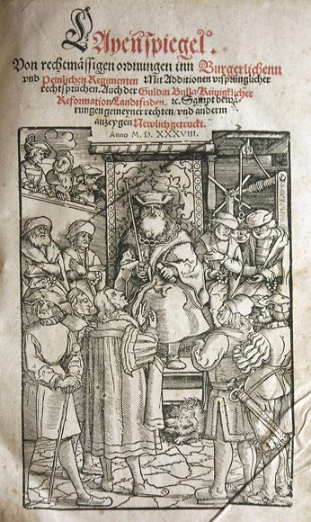 bei alten Drucken die dem Titelblatt gegenüberliegende Zierseite. Dargestellt sind Allegorien, später auch der Autor oder Personen, die im Werk eine Rolle spielen sowie Szenen mit Bezug zur Handlung des Buches. Oft ist auch der Schriftzug des Titels enthalten. Bei sehr frühen Drucken wird die Bezeichnung auch angewendet für das vielfach mit einem Holzschnitt dekorierte Titelblatt. Mit Aufkommen des Kupferstichs wurde das Frontispiz zu einem eigenständigen Blatt.
